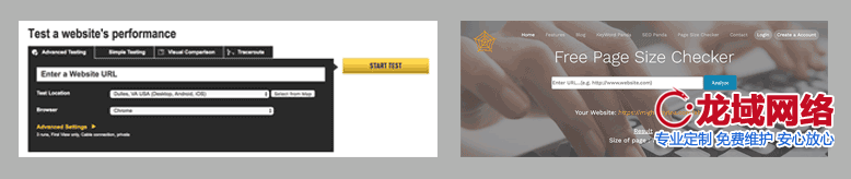 网页测试(左)和页面大小检查器(右)。